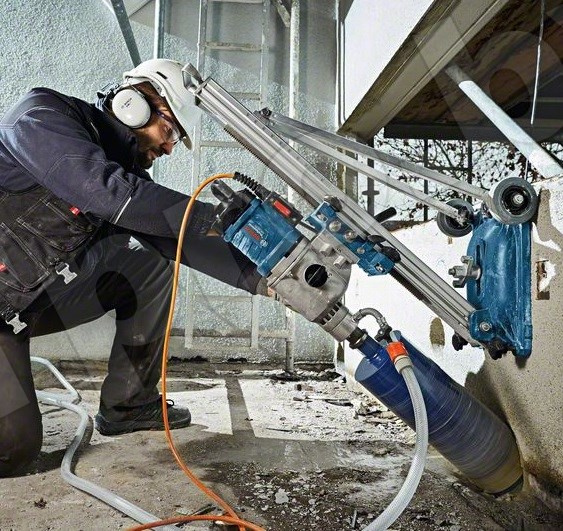 Дрель алмазного бурения Bosch GDB 350 WE 0.601.189.900 снабжена мощным трехскоростным двигателем, что позволяет сверлить отверстия в армированном бетоне диаметром до 350 мм. Прочная конструкция и редуктор со смазкой способствуют долгому сроку службы.