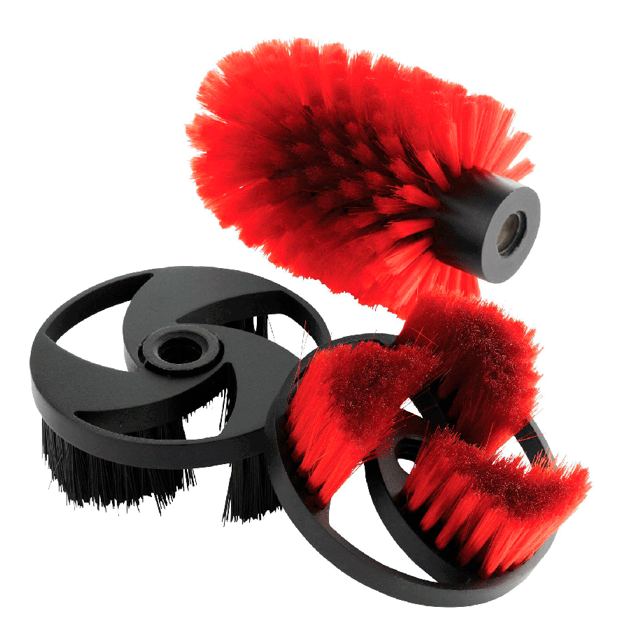 Комплект из трех щеток различной жесткости, для очистки сложных загрязнений на различных поверхностях. В корпусе щетки есть встроенная емкость для моющего средства.