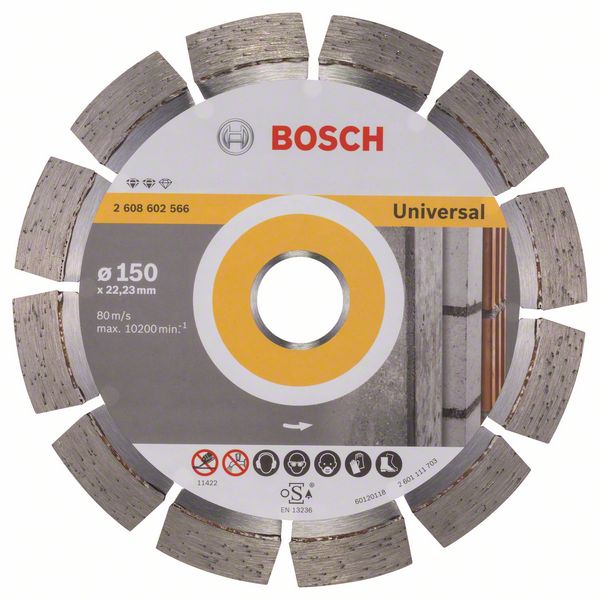 Универсальный инструмент для всех строительных материалов. Удачная комбинация долгого срока службы с высотой сегментов 12 мм и оптимальной рабочей производительности обеспечивает лёгкую резку. Лазерная сварка алмазных режущих сегментов.
