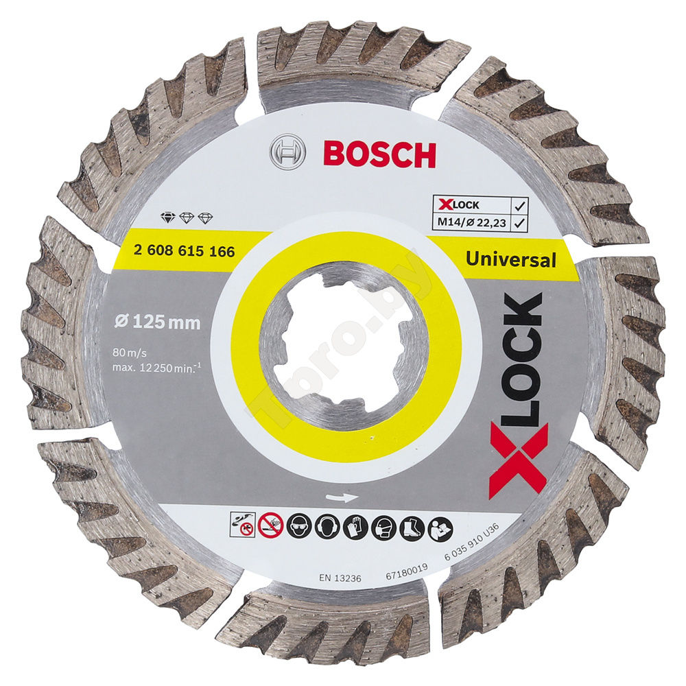 Алмазный диск X-LOCK Standard for Universal 2608615166 предназначен для работ по различным видам строительных материалов, таких как армированный бетон, клей для керамической плитки, битумы, бетон, мрамор, плитка, арматура, листовая сталь