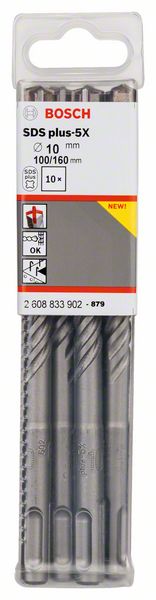 Бур SDS plus-5X (SDS-Plus) обеспечивает высокоэффективное сверление железобетона. Геометрическая форма наконечника с 4 кромками предотвращает заедание и поломку, обеспечивая оптимальные результаты. Наконечник с «углом поворота» и 4-канальная конструкция хорошо удаляют пыль для быстрого сверления с пониженным износом. Центрирующий наконечник направляет сверло для эффективного сверления отверстий в точности необходимого диаметра.