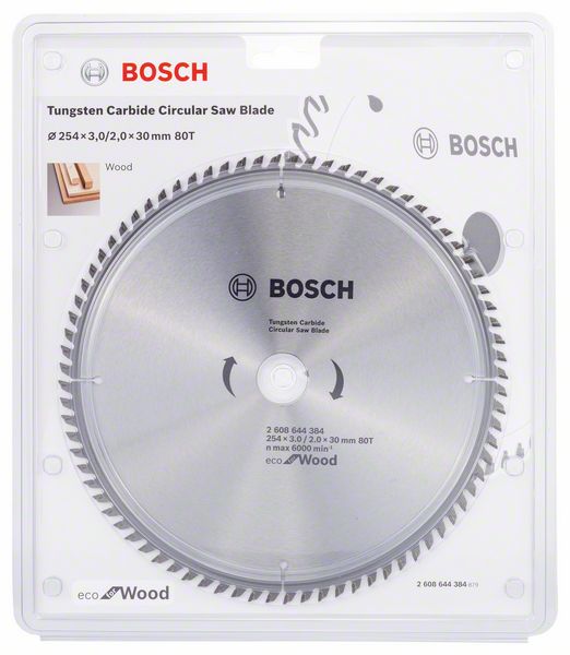 Bosch Eco for Wood - не дорогой, экономичный пильный диск по древесине, рекомендуется как оптимальный выбор для уверенной резки дерева. Полная шлифовка зубьев обеспечивает ровную резку без больших усилий. Специальный рецепт твердосплава обеспечивает хороший срок службы. Тщательно контролируемый процесс производства обеспечивает соответствие высоким стандартам качества Bosch.