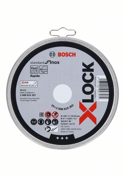 Отрезной круг X-LOCK Standard for Inox 2608619262 идеально подойдет для прямой резки по металлу, в частности, по нержавеющей стали. Диск, выполненный из качественных материалов, обеспечит быстрые и чистые пропилы без образования заусенцев и голубой окраски заготовки. Предназначен для углошлифовальных машин с системой X-LOCK, а так же болгарок с традиционной системой крепления диска.