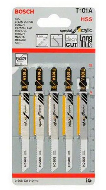 Лобзиковое пильное полотно T 101 A Clean for PC позволяет выполнять чистые прямые пропилы в пластмассе Гладко шлифованные зубья с телом сужающейся формы обеспечивают ровный результат Геометрия зубьев предупреждает плавление при резке листового поликарбоната Полностью закаленное полотно из высококачественной быстрорежущей стали — для абразивных термопластичных пластмасс
