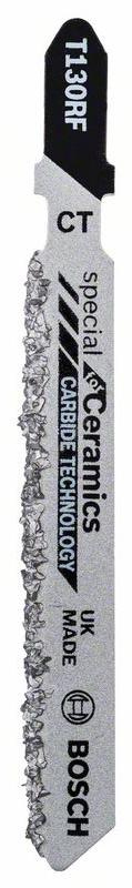 Лобзиковое пильное полотно T 150 RIFF Special for Ceramics — высокая прочность для чистых прямых пропилов в особых материалах Мелкая твердосплавная крошка предназначена для уточняющих пропилов в абразивных керамических материалах Полоска зубьев, приваренная к углеродистой стали благодаря твердосплавной технологии, для очень твердых материалов Мелкая твердосплавная крошка (K50) пилит мягкую керамическую настенную плитку толщиной 5–10 мм