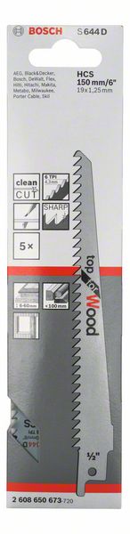 Сабельное пильное полотно S 644 D Top for Wood позволяет выполнять чистые криволинейные и погружные пропилы в древесине Остро заточенные зубья обеспечивают пропилы без сколов Коническое полотно обеспечивает легкую работу в труднодоступных зонах и позволяет выполнять криволинейные пропилы. Заостренный кончик для погружных пропилов Полотно HCS подходит для пиления древесины и неабразивных древесных материалов при строительстве