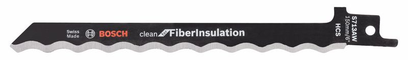 Cабельное пильное полотно S 713 AW Clean for Fibre Insulation — чистые криволинейные и погружные пропилы в особых материалах Острый волнистый ножевой край позволяет получить результат без сколов, скошенное полотно полотна — криволинейные пропилы Волнистый край и заостренный конец позволяют выполнять погружные пропилы Полотно HCS подходит для пиления волокнистых изоляционных материалов