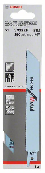 Сабельное пильное полотно S 922 EF Flexible for Metal оптимизировано для широкого спектра работ по металлу Мелкий шаг зубьев позволяет пилить материалы распространенной толщины Биметаллическое полотно рассчитано на длительный срок службы при резке стали средней прочности Мелкий шаг зубьев (1,4 мм) для резки труб/профилей (1,5–4 мм). Стандартная длина полотна (150 мм) для глубины реза 100 мм