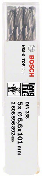 Спиральное сверло из быстрорежущей стали по DIN 338. Праворежущее спиральное сверло, тип N, острие сверла 135°, крестообразная подточка по DIN 1412 C, допуск на диаметр h 8. Диаметр хвостовика соответствует диаметру сверления, цвет сверла: белый. 2 режущие кромки, цил., 2-спир.