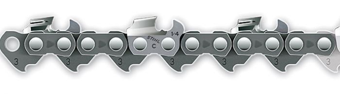 Специальная пильная цепь для фигурного выпиливания и ухода за деревьями. С низким уровнем вибрации, отличной производительностью пиления, благодаря укороченной верхней режущей грани зуба нажим при врезании не требуется, обеспечивает более высокую скорость врезания по сравнению с традиционными пильными цепями 1/4".